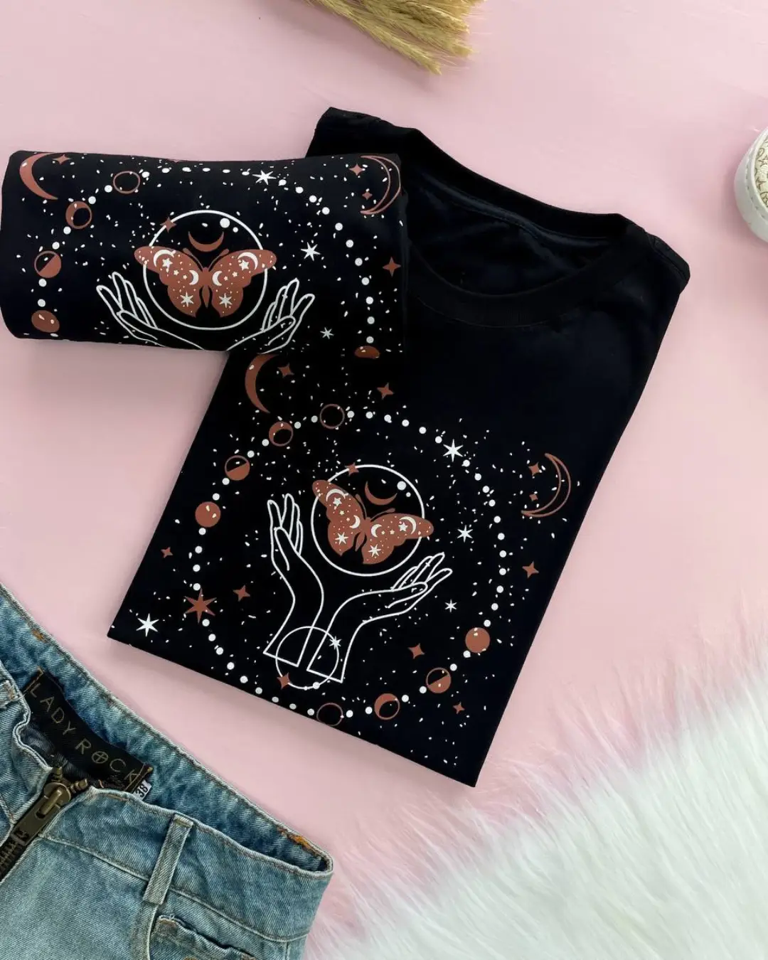 / T-Shirt Boboleta mãos